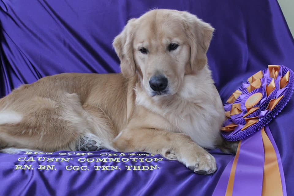 Cici is the foundation of Charm City Goldens. She was bred by Ginny and Jennifer Boyle of Charms Goldens in Pylesville, MD. Cici was my heart dog. She was both beautiful and extremely intelligent. Cici won Best of Breed at the Garden State Golden Retriever Club in September 2017 and had multiple group placements. The following year she was the #13 female golden in the country. Cici spent much of her time in the conformation ring, but she had also earned the first legs on her Companion Dog (CD), Novice Agility (NA), and Novice Agility Jumpers (NAJ) titles. Cici’s first love was being a therapy dog at a local nursing home. She was also trained through the Senior Hunter level and was waiting to take her tests. Cici had experienced pyometra. I treated CIci for the pyo and I made the difficult decision to spay her at 6 years old. She unfortunately passed away due to complications from a routine spay.